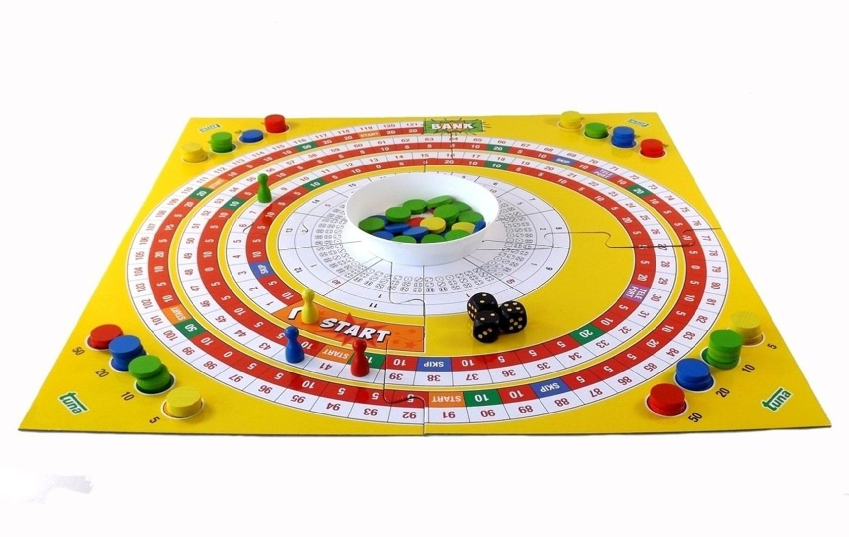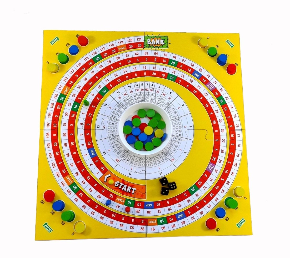 Je to hra, která se hraje se třemi kostkami a hraje se o žetony. Hra je velmi akční a plná zvratů. Každý hráč se může dostat velmi rychle k banku pokud bude mít štěstí, pokud ne, tak se může také velmi rychle stát, že budu opakovaně na startu. Skoro při každém hodu musím vkládat něco do banku nebo něco vyhrávám z banku.Hra se hraje o žetony, ale může se jistě hrát i o drobné.