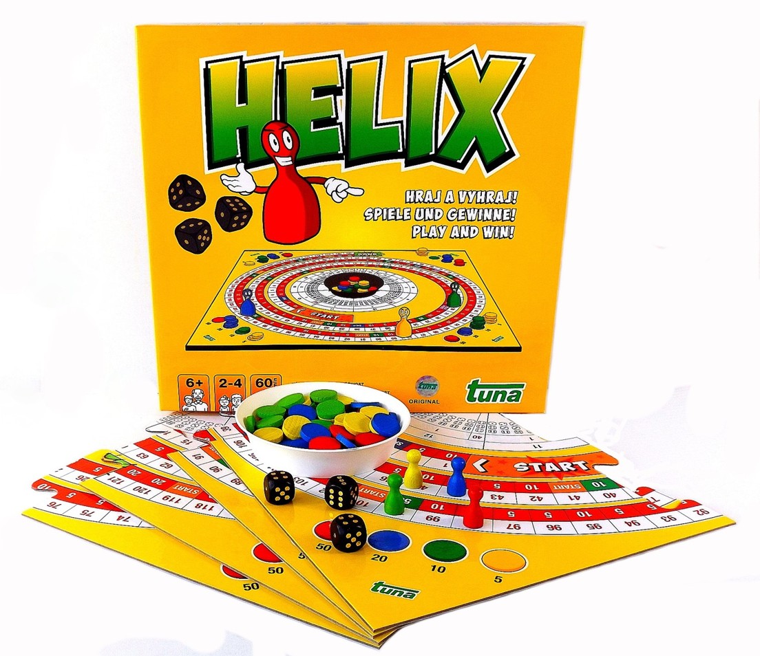 Hra HELIX je zábavná hra pro 2 až 4 soutěživé hráče (mohou jí hrát i více než 4 hráči najednou, stačí přidat figurku a podělit se o žetony).