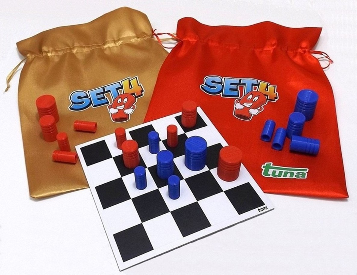 SET 4 je skvělá desková hra pro dva hráče. Zkušenější hráči hrají jednu hru kolem 5 minut. Proto je vhodná i pro turnaje.