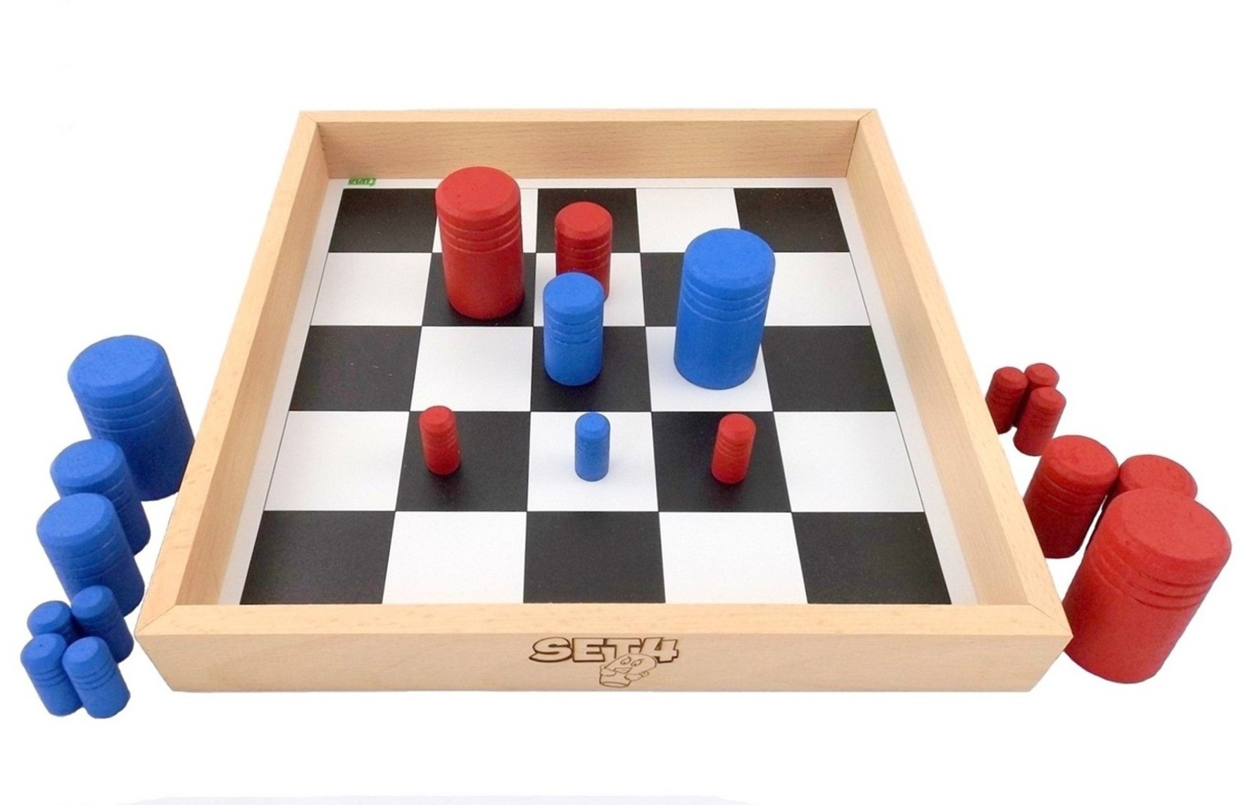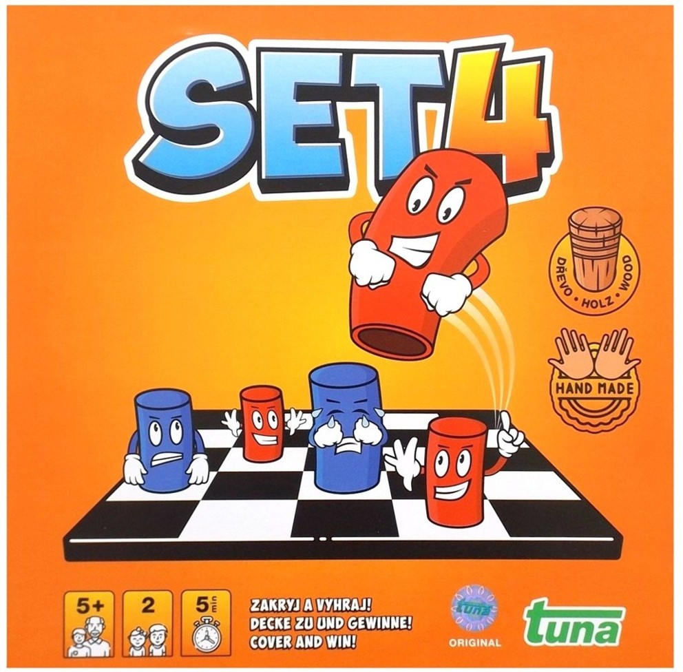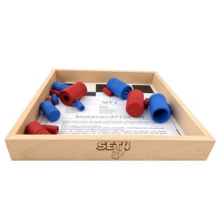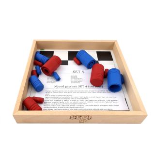 SET 4 je skvělá desková hra pro dva hráče. Zkušenější hráči hrají jednu hru kolem 5 minut. Proto je vhodná i pro turnaje.