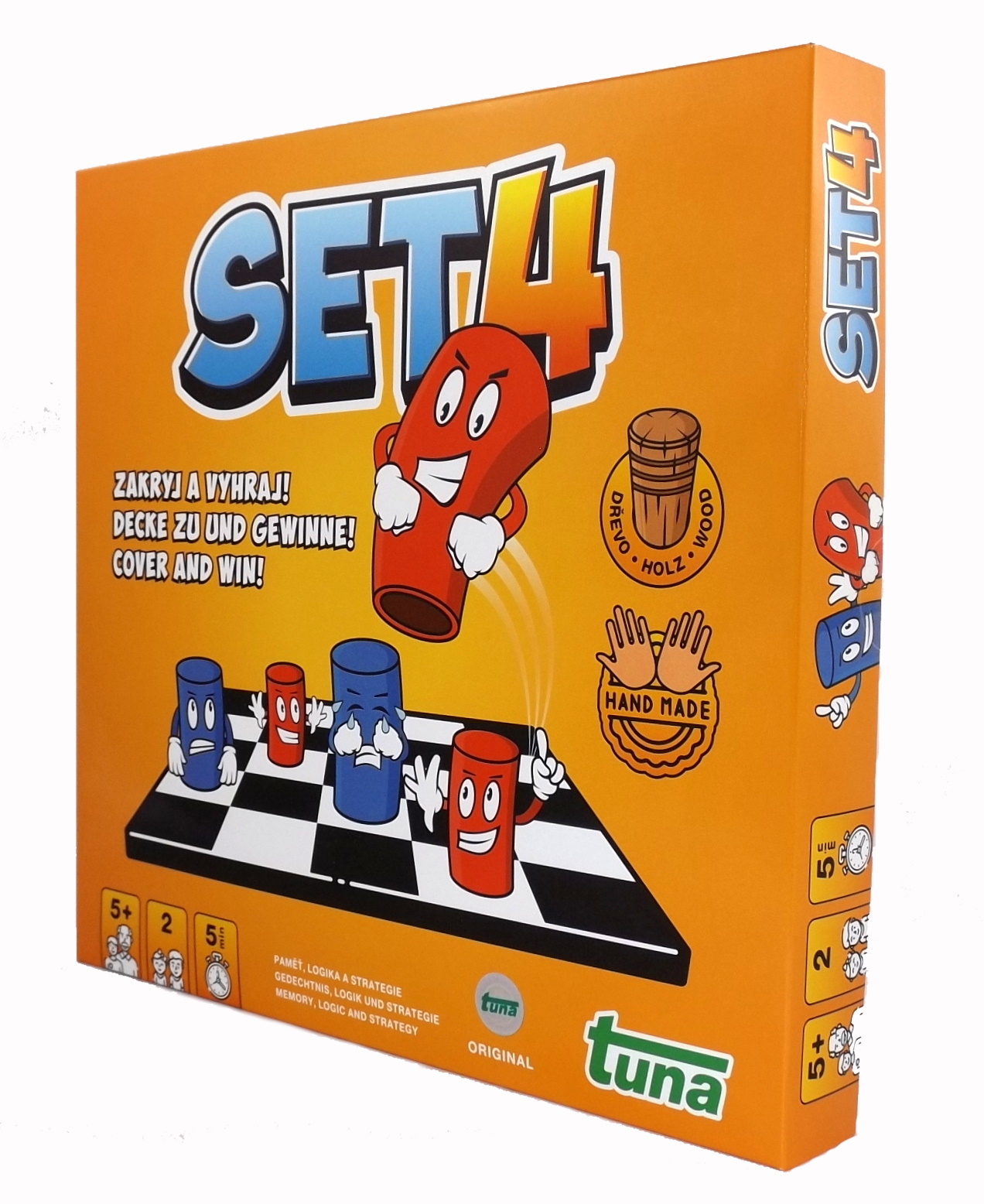 SET 4 je skvělá desková hra pro dva hráče. Zkušenější hráči hrají jednu hru kolem 5 minut. Proto je vhodná i pro turnaje.